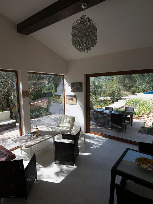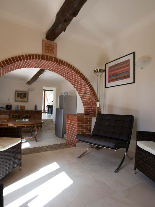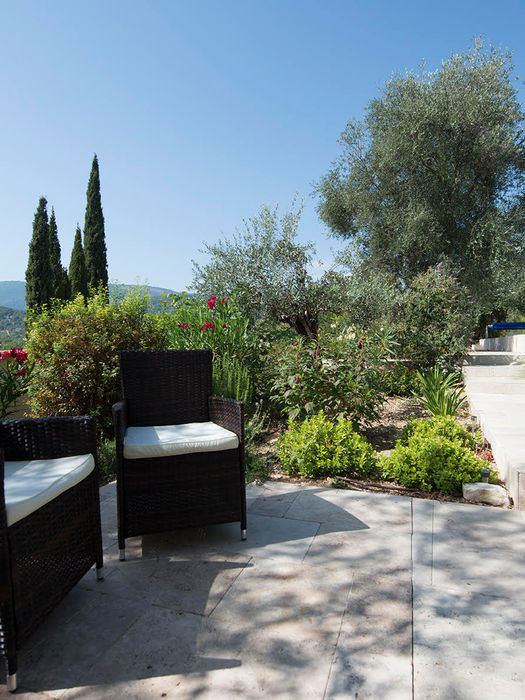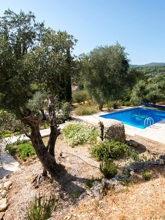 7 bedrooms, 5 with queen size beds, and two with twin single beds, 4 bathrooms with showers, 1 with bath tub, a sitting and reading room, and a high ceiling dining room with glass doors leading to wrap around terraces and the pool. (Please Note: The use of Pool season begins on the last weekend of April through 31st of October) The house is an oasis located in a huge park of terraced olive groves. The pool has an alarm and cover and is uniquely situated among olive trees and provencal terraces.